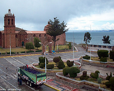 Ubicada a 130 Kms. de la ciudad de Puno, donde se puede apreciar el lago en su mayor extensión, uno de los monumentos más importantes de este lugar es el templo de Santiago por su belleza.