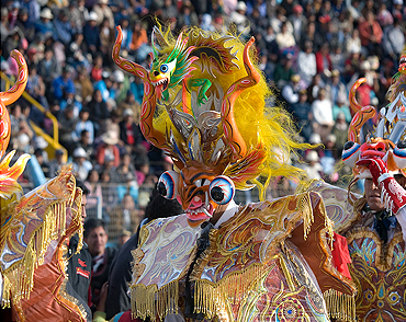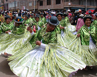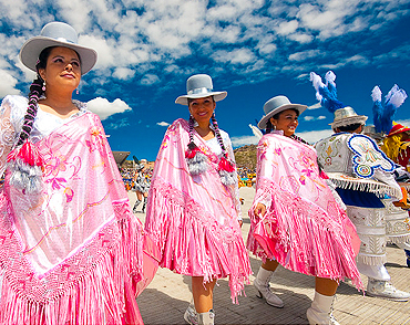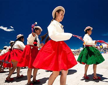 Festividad de la Virgen de la Candelaria Patrimonio Cultural Inmaterial de la HumanidadDurante febrero de cada año, las orillas del Lago Titicaca son el escenario de una de las fiestas más coloridas y alegres del Perú. La Fiesta de la Virgen de la Candelaria es una sorprendente fusión de tradición religiosa colonial con arraigadas costumbres y su veneración a la virgen. Por ella, Puno es considerada la capital folclórica de América y es la Diablada, una de las danzas más vistosas y representativas de esta fiesta, donde más de 40 000 danzantes y 200 bandas musicales expresan al máximo toda su devoción a través de sus maravillosas vestimentas y una energía que los hace bailar por dos semanas completas. Fuente; PROMPERÚ